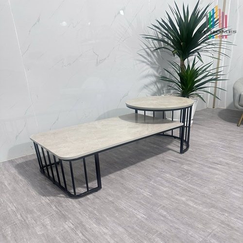Bàn Sofa hiện đại với mặt đá và khung sắt mạ đồng, tạo điểm nhấn cho không gian