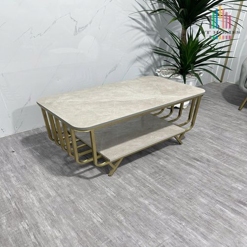 Bàn Sofa hiện đại với mặt đá và khung sắt mạ đồng, tạo điểm nhấn cho không gian
