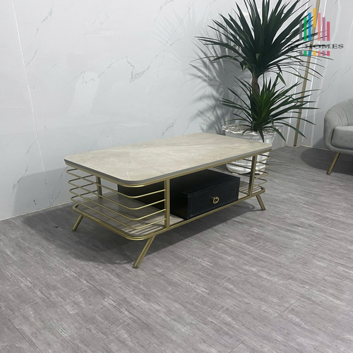 Bàn Sofa hiện đại với mặt đá và khung sắt mạ đồng, tạo điểm nhấn cho không gian
